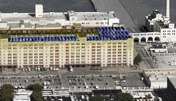 On the local scene – the City plans to deck out the Brooklyn Army Terminal with photovoltaic solar panels. Dubbed the “Smart Grid Demonstration Project,” the panel array will be the largest solar collector in the city and generate at least 600,000 kilowatts of energy annually – enough to power 120 homes (or 2% of the terminal’s energy consumption). The plan is a collaboration between the New York City Economic Development Corporation and Con Edison, who are using $4.5 million of their American Recovery and Reinvestment Act funds. Once up and running, the BAT will be used to collect data on storage capacity and management of solar panels, and the EDC says its predicted success will lead to the installation of solar arrays in more locations, and perhaps the continued alliance of public and private money in the Bloomberg administration’s Green Economy Plan.