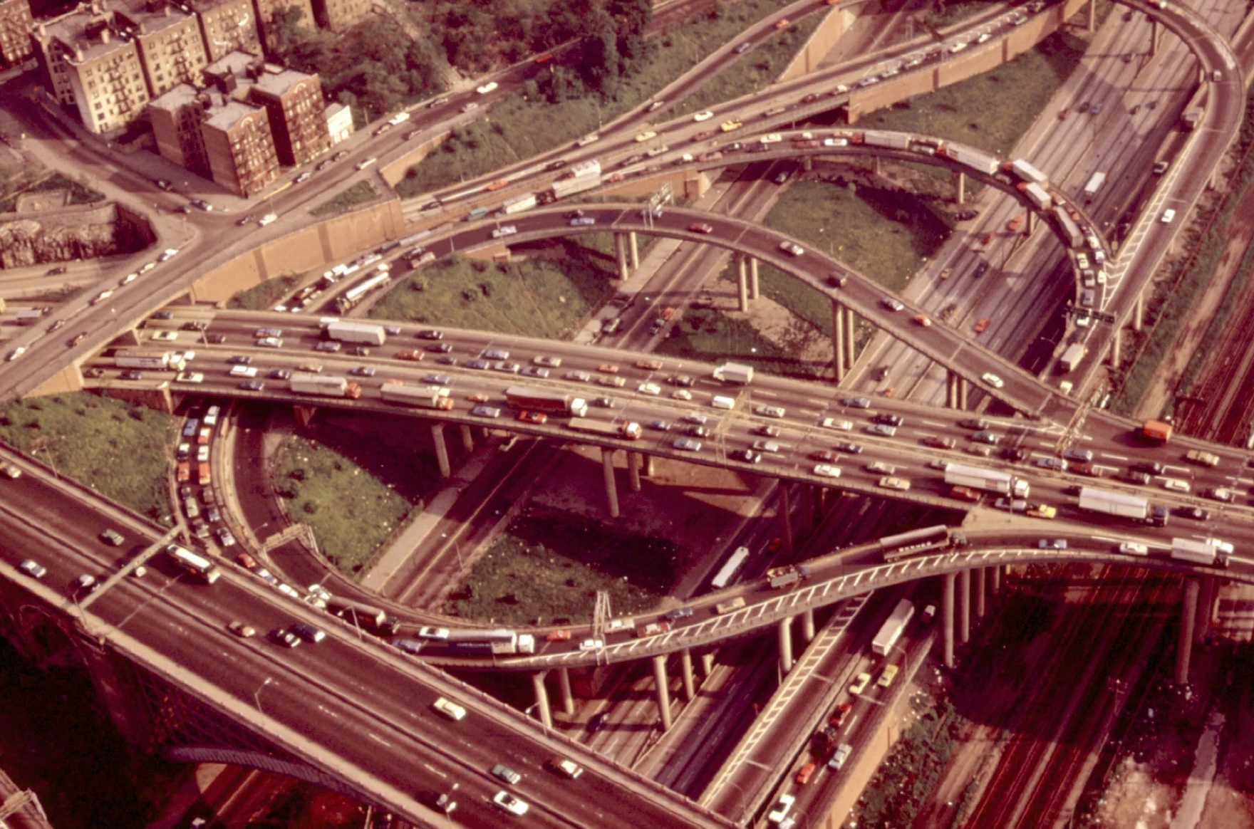 Above and beyond the quest to connect New York City’s boroughs and neighborhoods, and to link to suburbs in northern New Jersey, Long Island, Westchester, and southwestern Connecticut, ever more powerful pressures were emerging at the national level to link cities, metropolitan areas, and regions across the country. In 1956, the launch of the federal Interstate Highway System sought to tie all 48 states in the continental US and all their major cities into a national expressway network. By the end of 1974, over 36,000 miles of the projected 42,500-mile interstate system had been completed and 2,800 more were under construction.