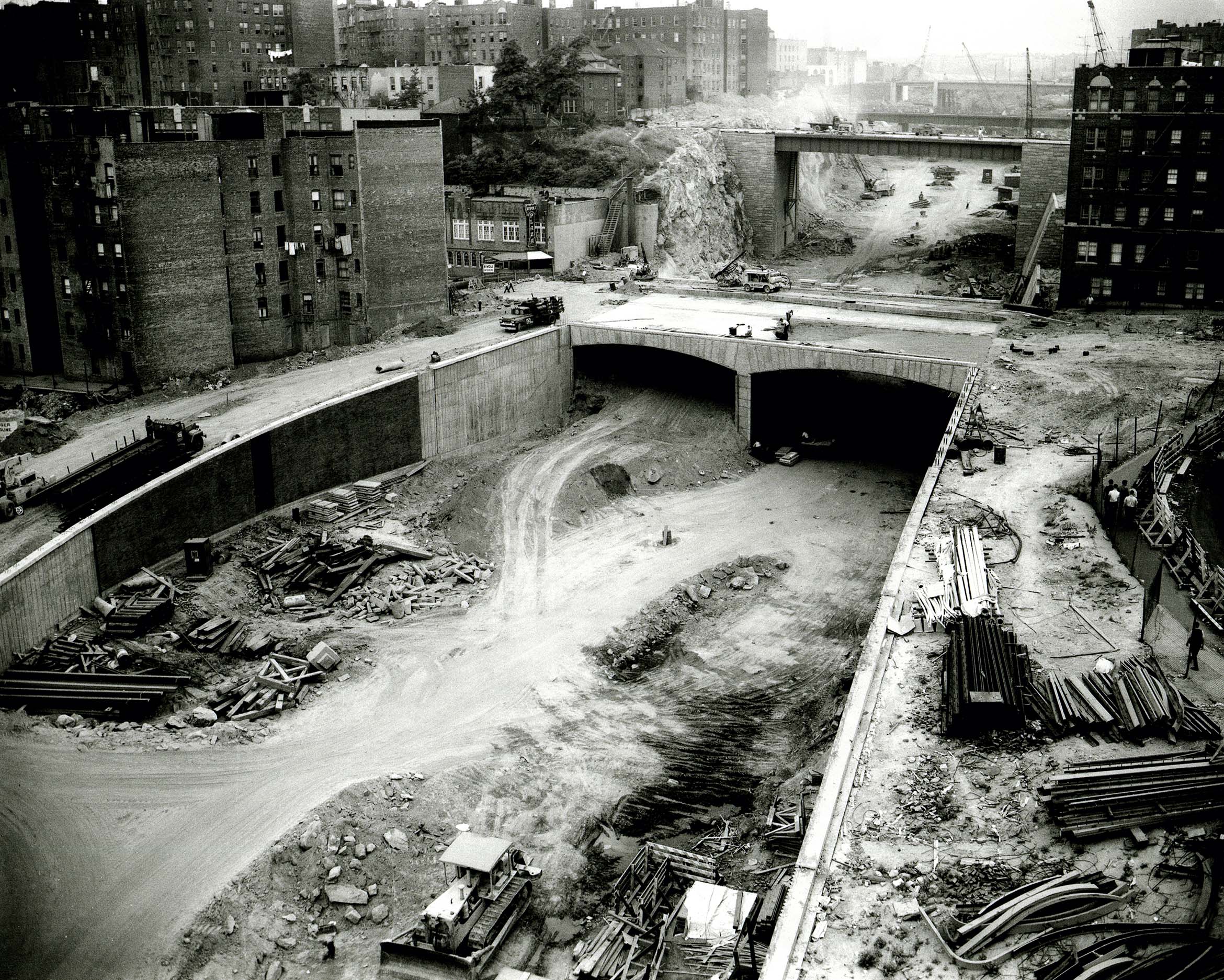 Who built the Cross Bronx Expressway? The infamous road’s best-known origin story is by now a legend. A prototype for US urban interstates and an ur-product of a school of highway planning that cemented inequality, the expressway is the snarling legacy of an evil Robert Moses; Moses, dripping with disdain for the working people of the Bronx, hacked his meat ax through their neighborhoods and sent half the borough into a tailspin. That’s the Robert Caro version, enshrined in his book of outsize influence. But the story is “not so simple,” as Ray Bromley has written, putting the journalistic account in historical perspective and in conversation with the facts on the ground.