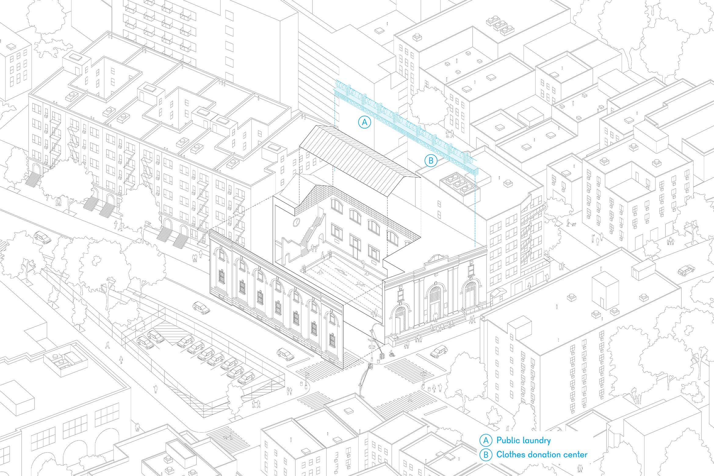 Building on the history of public baths, what if the City reintroduced public laundromats into former bathhouse buildings? Visitors could do their laundry while attending swim classes or fitness programs, no longer having to choose between exercise and domestic duties. In addition to serving a practical need, these laundromats could act as social gathering spaces and serve as clothing donation drop-off points.