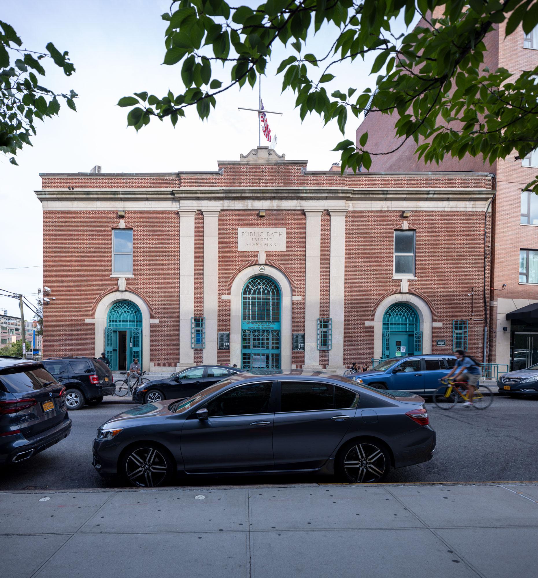 In 1895, New York State mandated the establishment of public baths in all cities with more than 50,000 residents. Until then, to maintain personal hygiene, wash laundry, cool off, and swim, New Yorkers had relied on floating pools in the East and Hudson Rivers, as well as natural bodies of water. The first municipal bath in New York City, the Rivington Street Bath, opened in 1901. By 1915, 15 more public facilities had been established in Manhattan, along with eight in Brooklyn, and one each in Queens and the Bronx. Inspired by European models, these facilities offered public showers, tubs, laundries, and “comfort stations” (public toilets). As plumbing became more widespread in private homes, public baths became less essential. Some bathhouses adapted by incorporating gymnasiums and swimming pools, allowing them to function as recreational spaces and offering much needed relief during the summer heat. In 1940, several public baths were renovated, but most were closed in the years following World War II. Several former bathhouses, including the Metropolitan Pool in Brooklyn, survive today, repurposed as indoor public swimming pools and recreation centers.