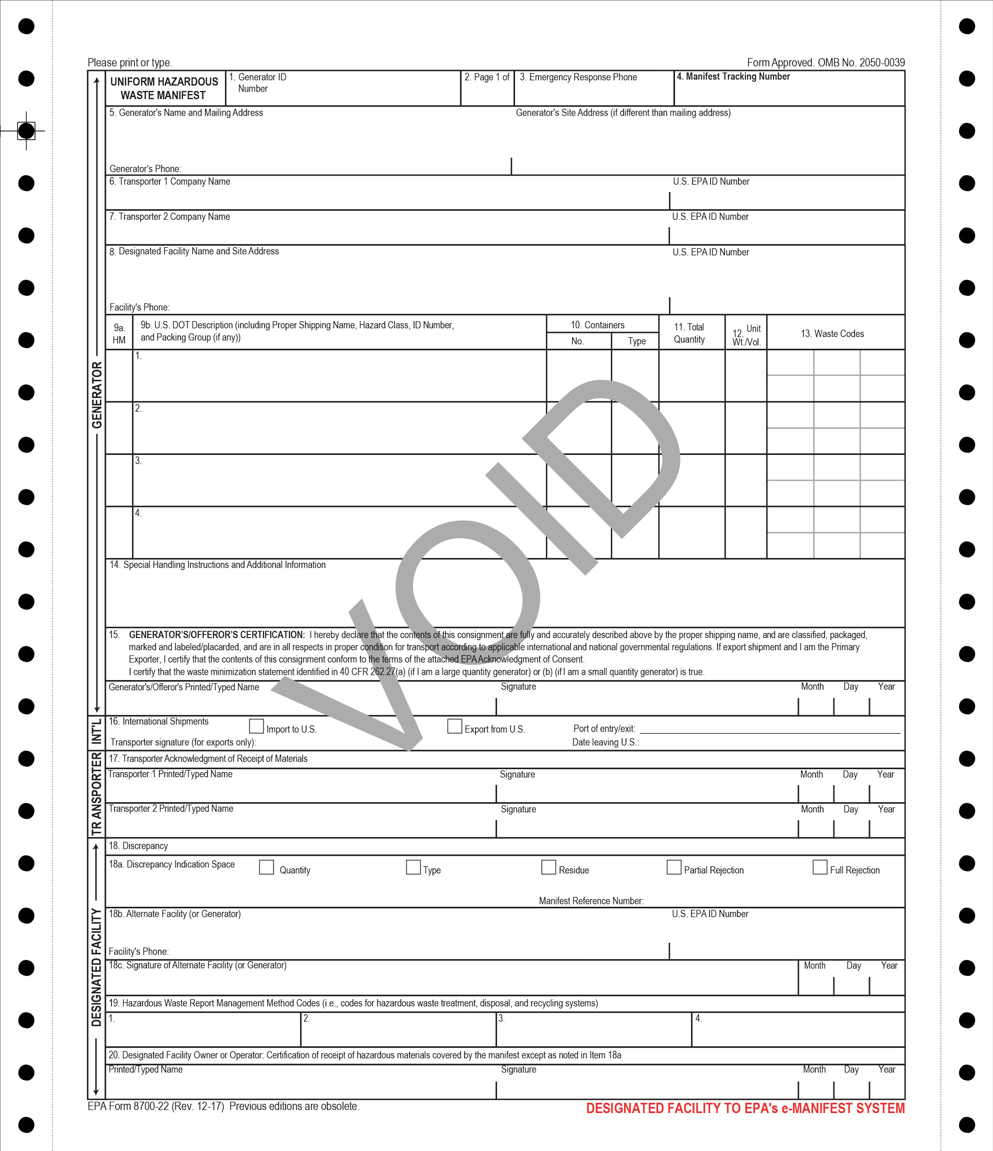 A sample Environmental Protection Agency soil manifest form. Image via the US Environmental Protection Agency
