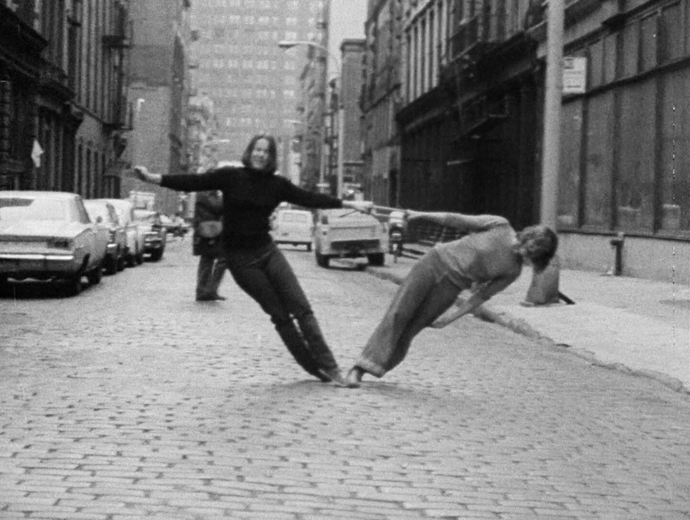 The 1970 premiere of Trisha Brown’s Leaning Duets, performed in and around 80 Wooster Street. Film still © The Museum of Modern Art/Licensed by SCALA/Art Resource, NY