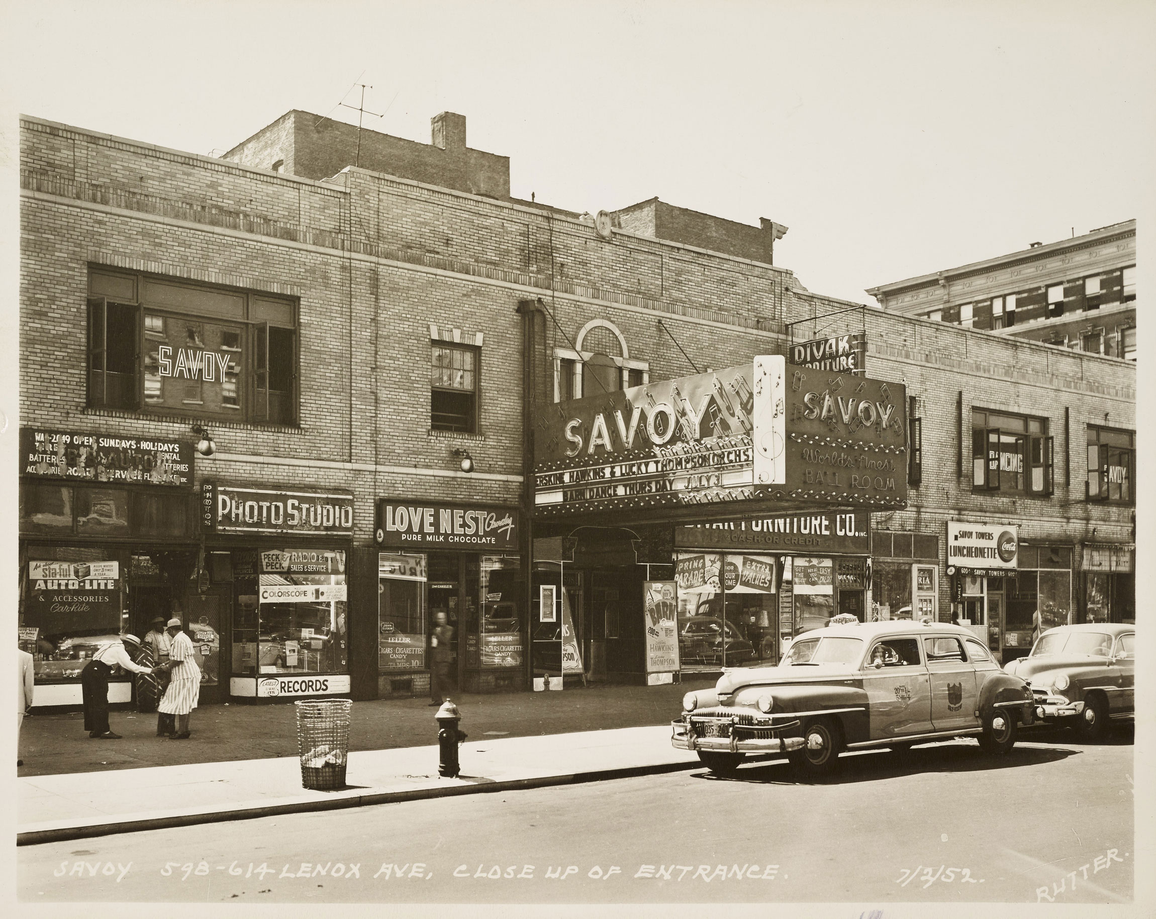 The Savoy Ballroom on Lenox Avenue in Manhattan in 1952. Photo by Rutter Studio, via the New York City Municipal Archives, Condemnation Photograph Files