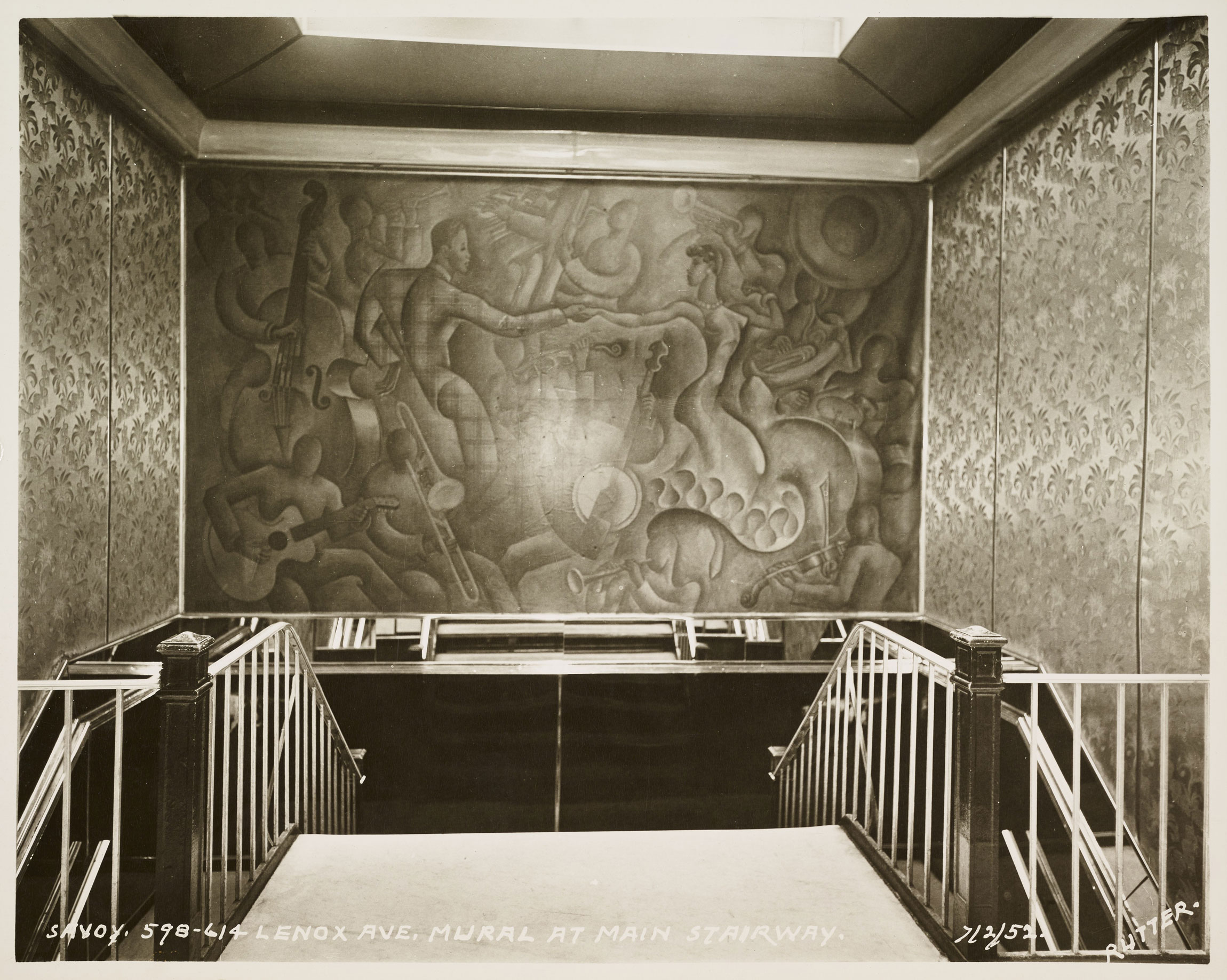 A mural inside the Savoy Ballroom. Photo by Rutter Studio, 1952, via the New York City Municipal Archives, Condemnation Photograph collection