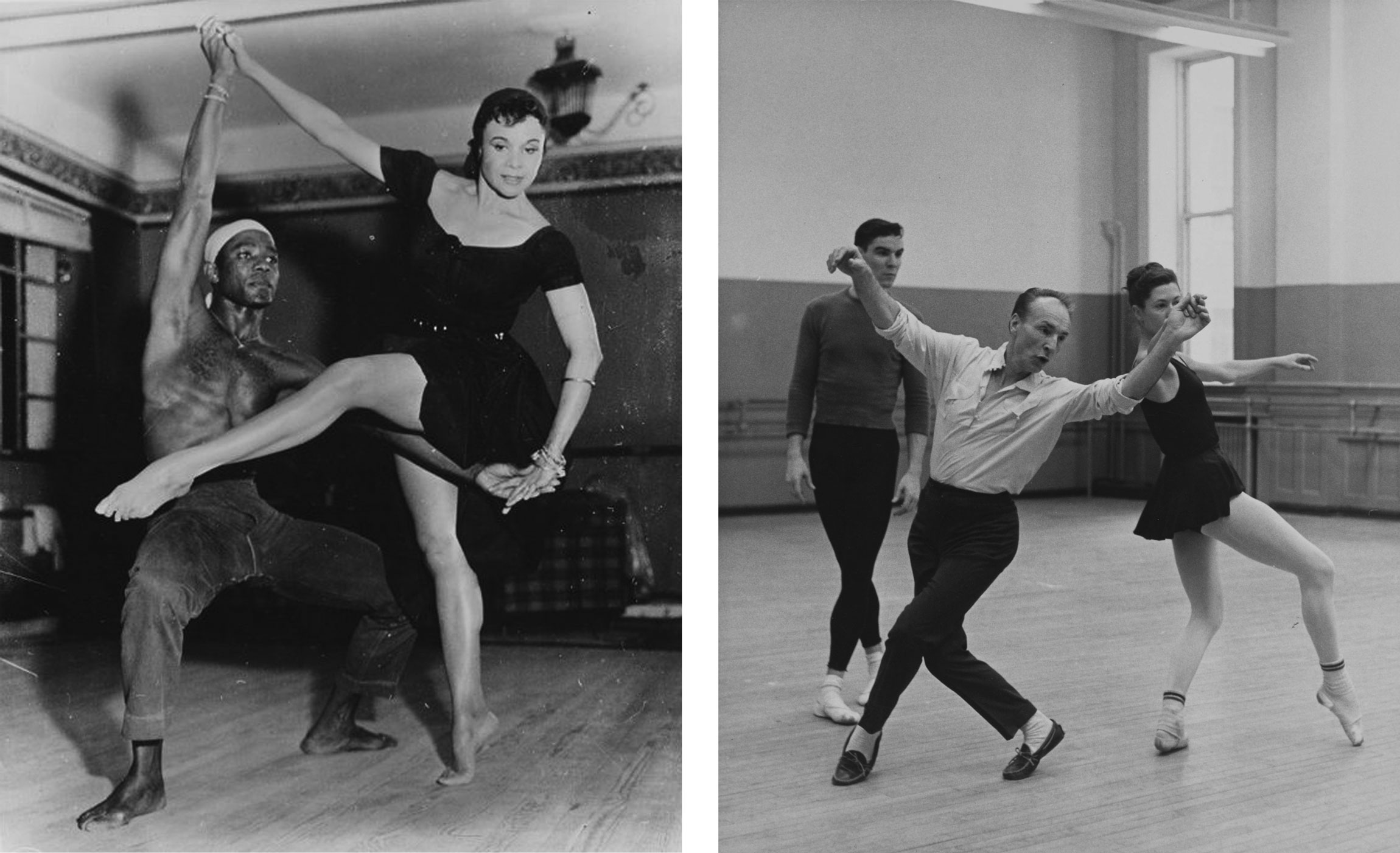 (Left) Katherine Dunham, 1940s. (Right) George Balanchine, 1960s. Photos via the New York Public Library Digital Collections, Jerome Robbins Dance Division