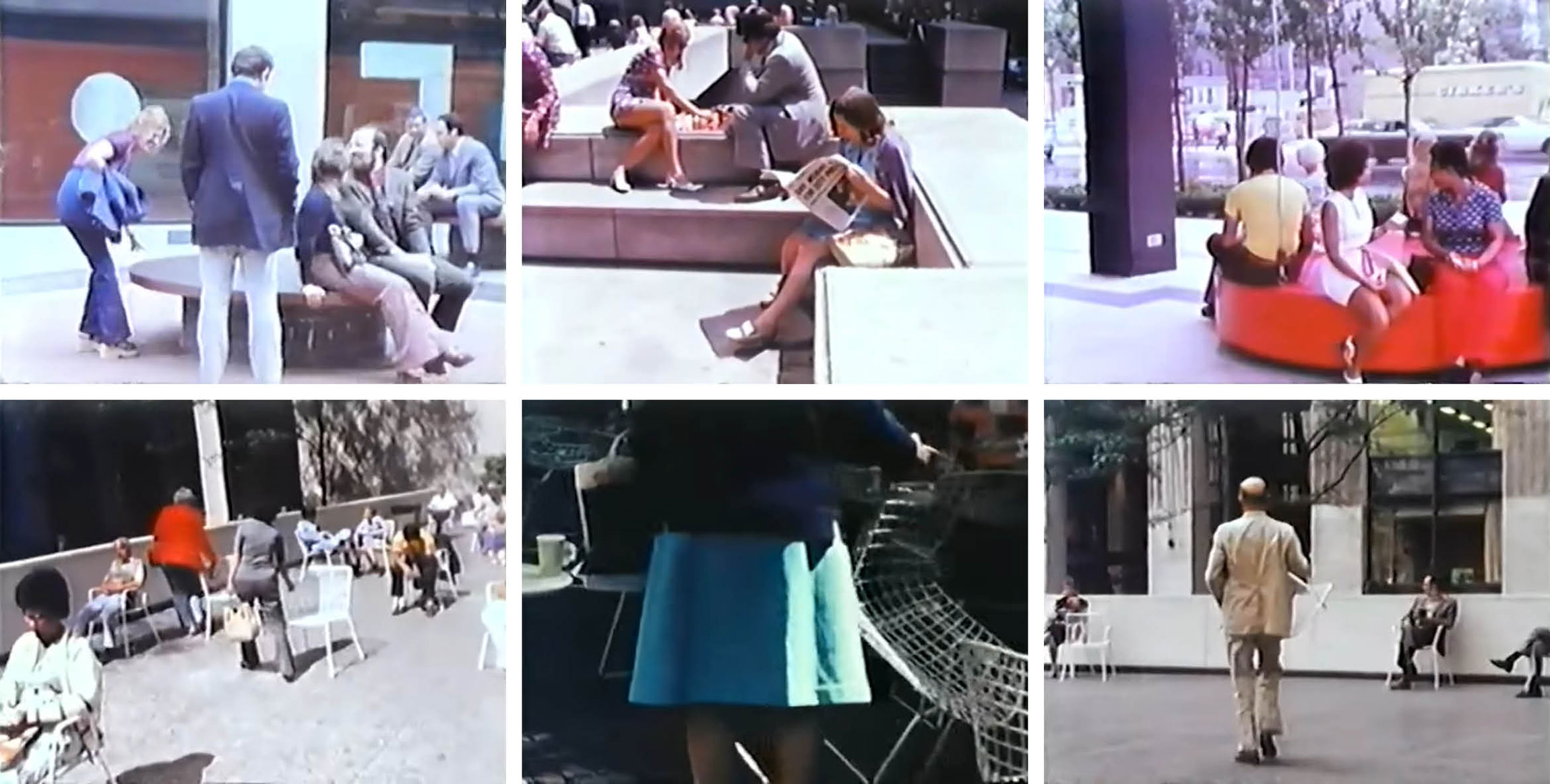 The choreography of movable chairs and other public seating in New York City, from the 1980 film adaptation of <i>The Social Life of Small Urban Spaces</i> by William Whyte. Screenshots via <a href="https://www.youtube.com/watch?v=5QkJkT3M-Us" target="blank">Youtube</a>