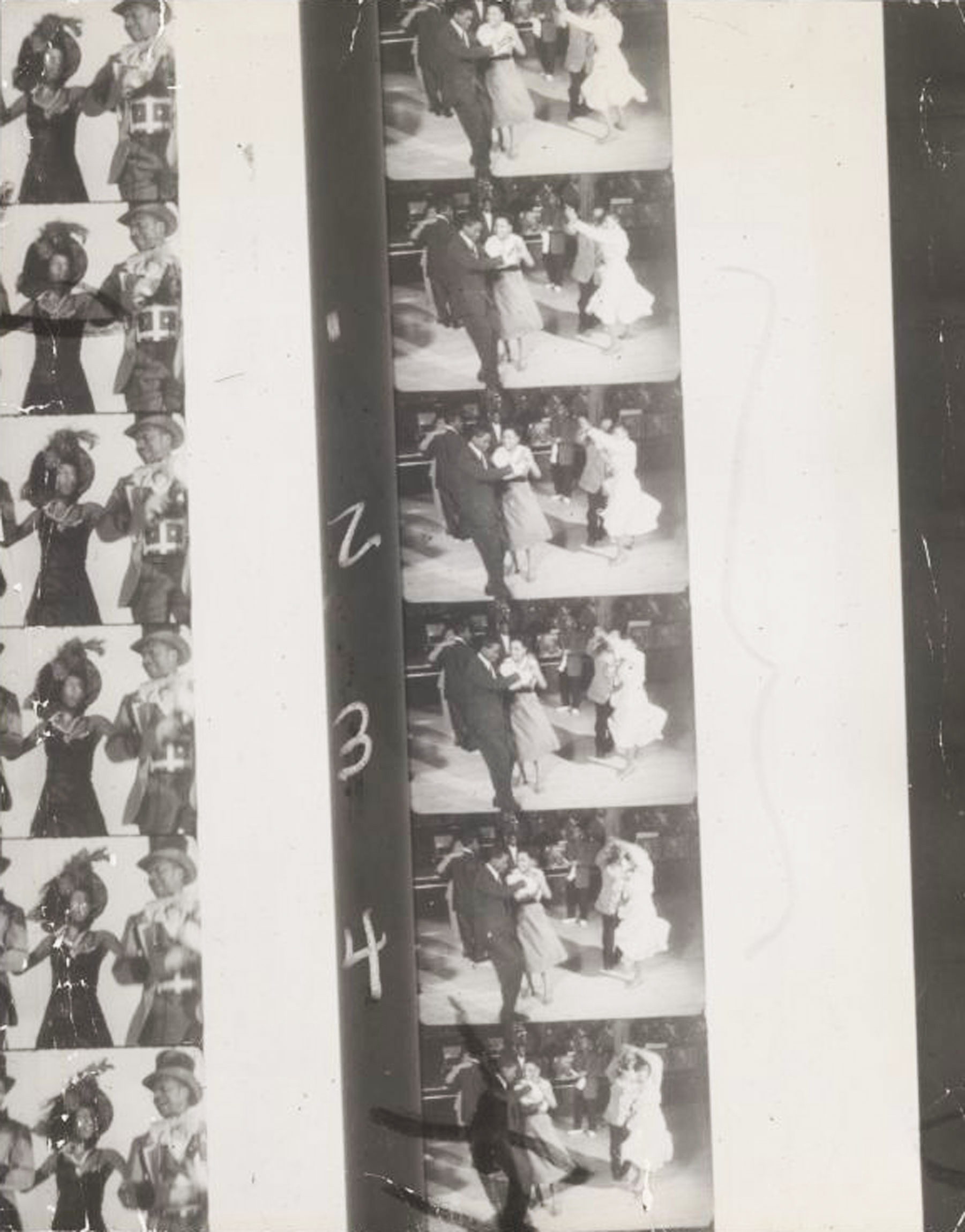 Contact sheet of images for the 1950 documentary film, The Spirit Moves, by Mura Dehn, chronicling the Savoy Ballroom. Photo via the New York Public Library Digital Collections, <a href="https://digitalcollections.nypl.org/items/51f4f1a0-6896-013d-bfbe-0242ac110005?canvasIndex=0" target="blank">Jerome Robbins Dance Division</a>
